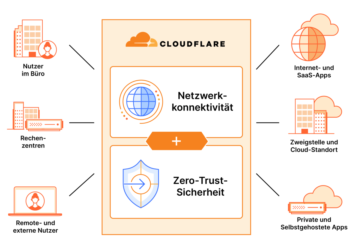 Mit Cloudflare Zero Trust schützen Sie Ihre Mitarbeiter, Anwendungen und Daten durch eine dynamische Zugriffskontrolle, die auf Benutzeridentität, Gerätesicherheit und Kontext basiert. Dabei wird jede Verbindung überprüft, bevor sie Zugriff auf Unternehmensressourcen erhält. Dies schützt vor modernen Bedrohungen wie Insider-Angriffen, Phishing und unautorisierten Zugriffen, ohne die Benutzererfahrung zu beeinträchtigen.
